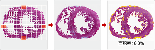 视野对准标本的一部分后,只需按下按钮即可自动开始扫描标本。仅需自动识别标本形态并扫描必要需要的位置,快速创建整个标本的导航图像。