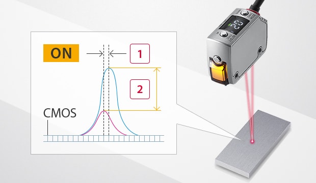 存储到基准背景的距离和光强度,工件在进入检测区域时,如果距离或光强度从存储的状态开始发生变化,则会进行检测。如果存在背景,即使形状复杂、工件的颜色或表面状态发生变化仍可进行准确检测,即使是段差较小的薄型工件也可进行稳定检测。